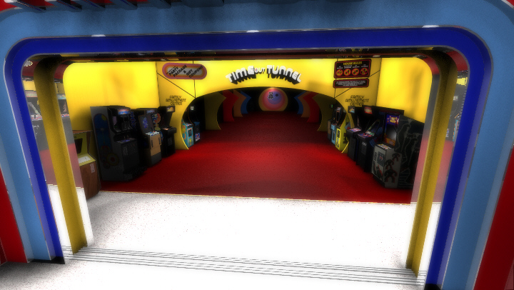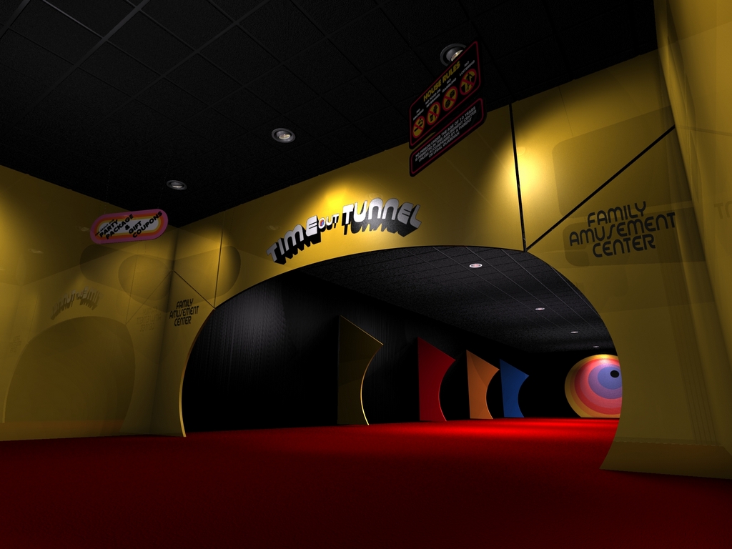 a typical eighties mall Time-Out Tunnel arcade with the intention of creating some sort of